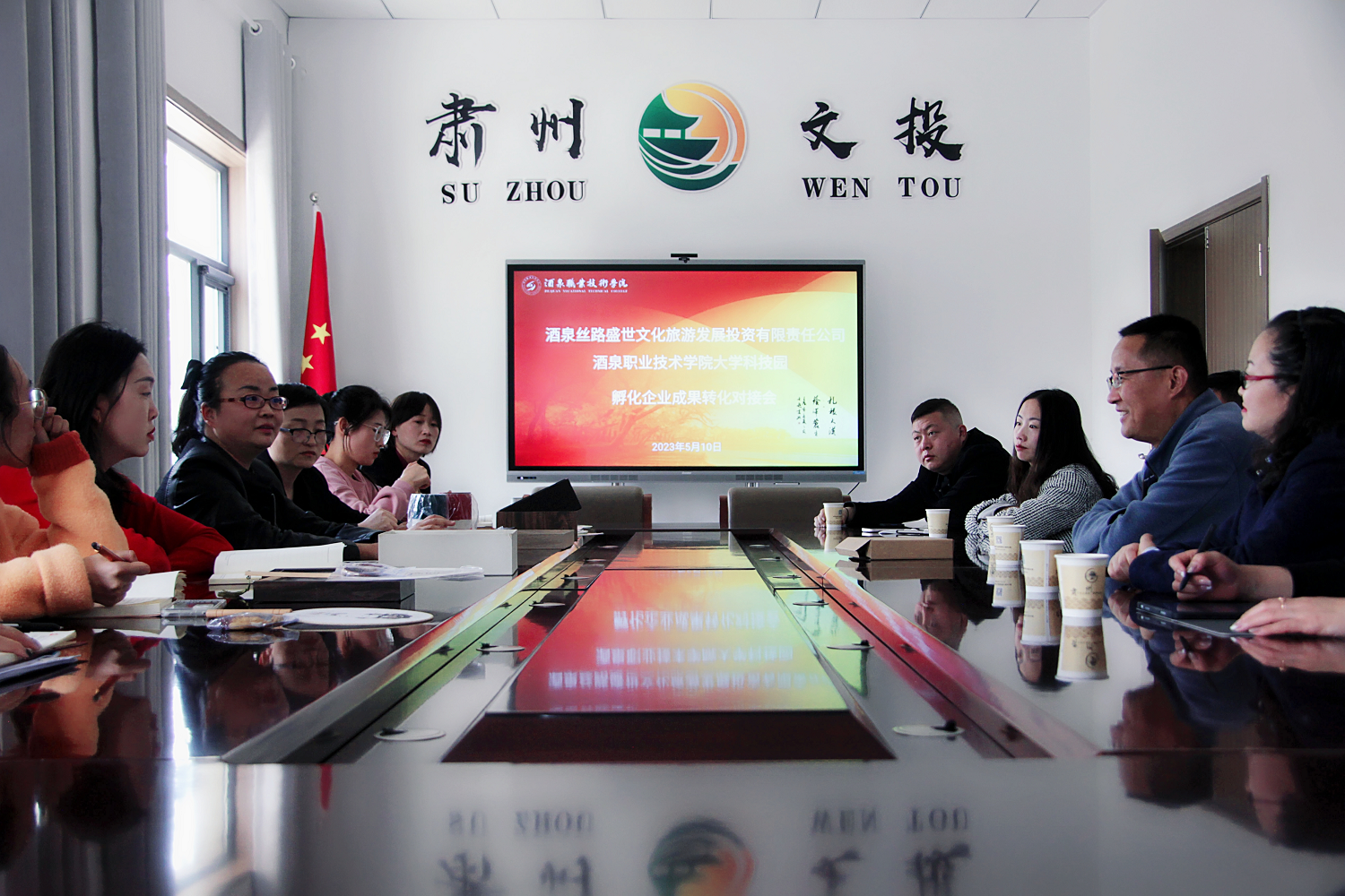 5月10日下午,酒泉职业技术学院大学科技园与酒泉丝路盛世文化旅游发展投资有限责任公司在酒泉市1969文化艺术创意园举行双创成果转化对接会。